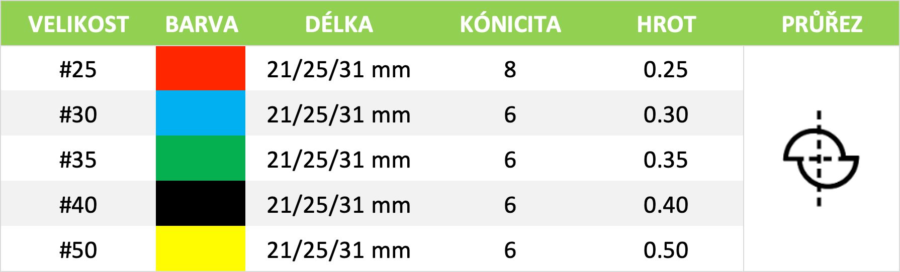 • Classic (Silver) – základní NiTi bez pokročilé povrchové úpravy, poskytující standardní flexibilitu a pevnost. Doporučuje se pro přímé a jednodušší kanálky, kde není nutná výrazná adaptace nástroje na anatomii.
